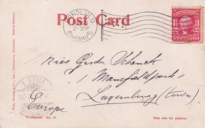 Of course under UPU regulations, the 10c Luxembourg stamp imprint was only valid for return postage to Luxembourg, but the card was not taxed. The poorly struck rectangular auxiliary mark seems to concern finding the delivery address in Hamburg, although I'm unsure of its significance. Comments?